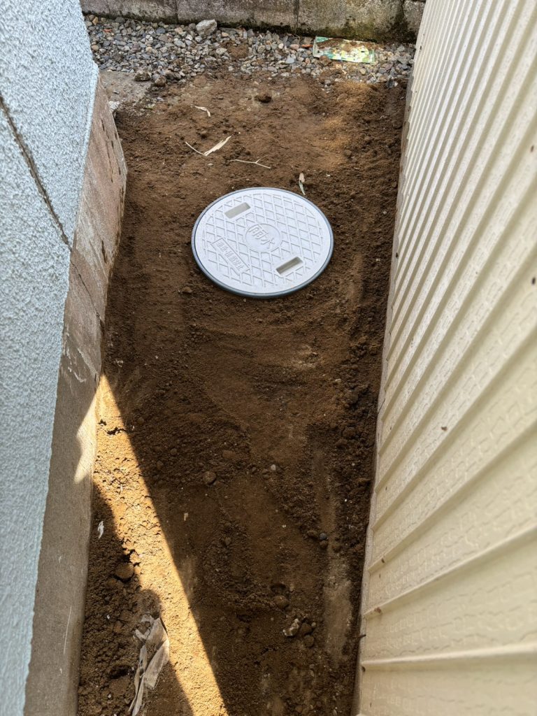 千葉市I邸にて、コンクリート排水桝を交換しました。