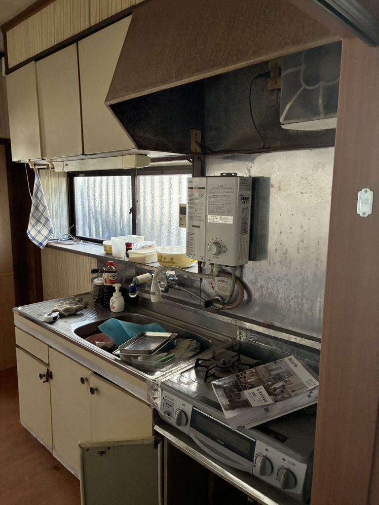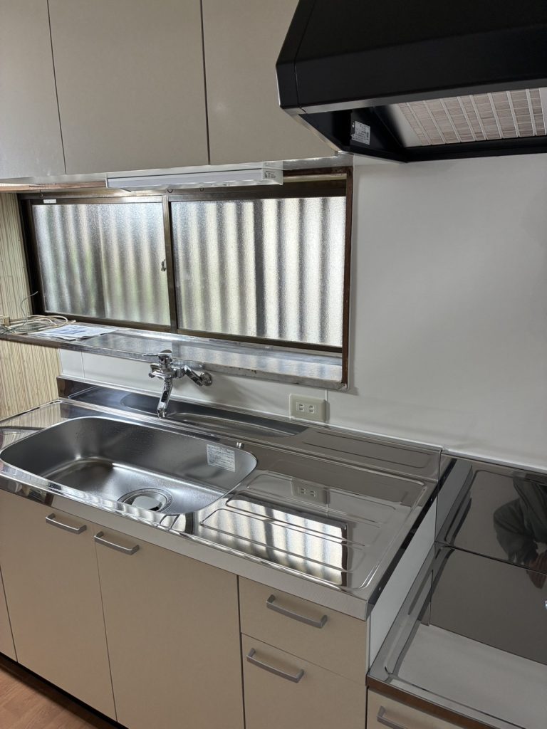 千葉市I邸にて、キッチンを取替えました、トイレの壁を塞ぎました。